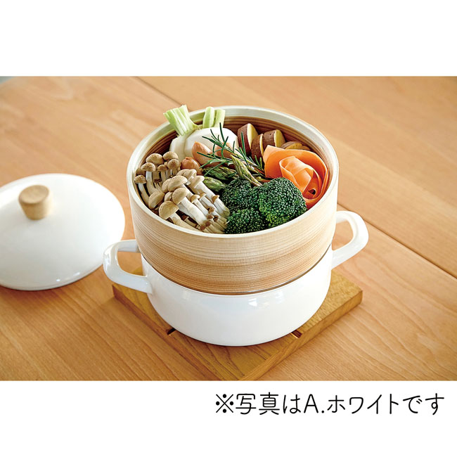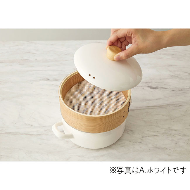 せいろ付き ホーロー鍋 18cm (B)グレージュ